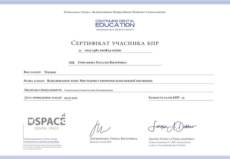- Тренинг: «Отбеливание зубов. Искусство создания белоснежной улыбки», 2025