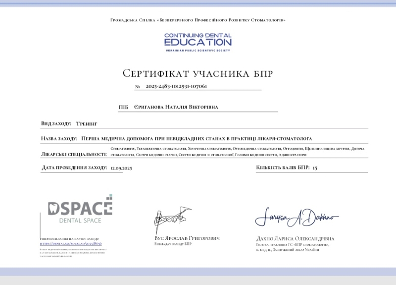 - Тренинг: «Первая медицинская помощь при неотложных состояниях в практике врача-стоматолога», 2025