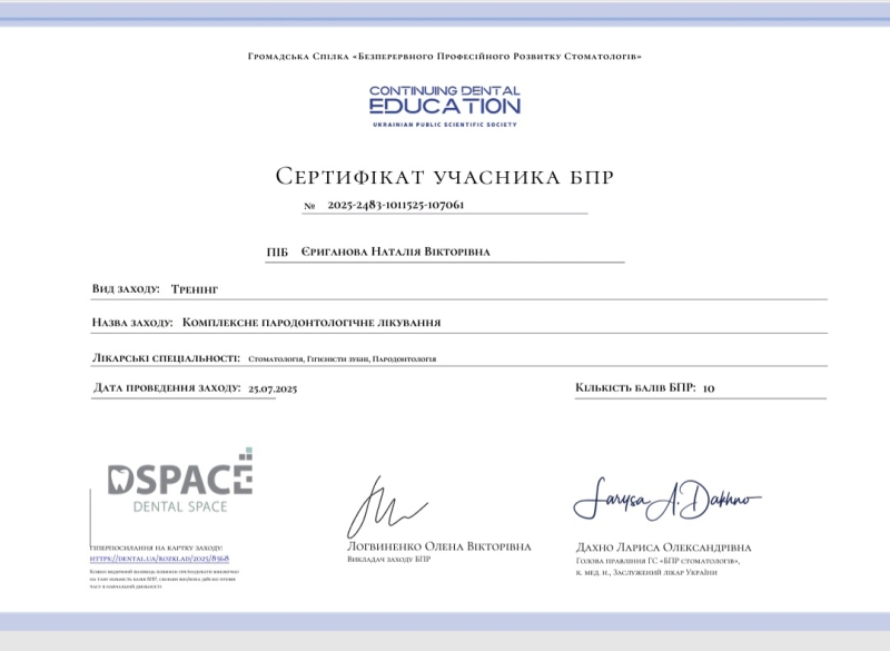 - Тренинг: «Комплексное пародонтологическое лечение», 2025