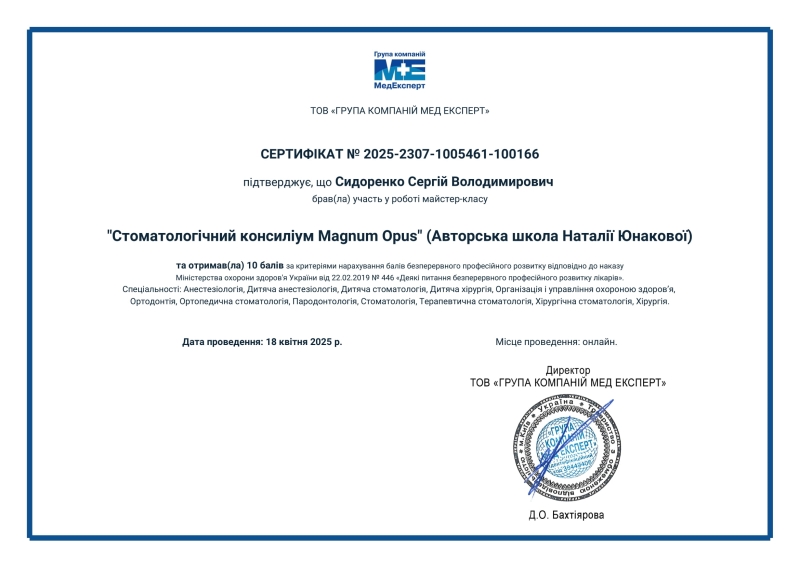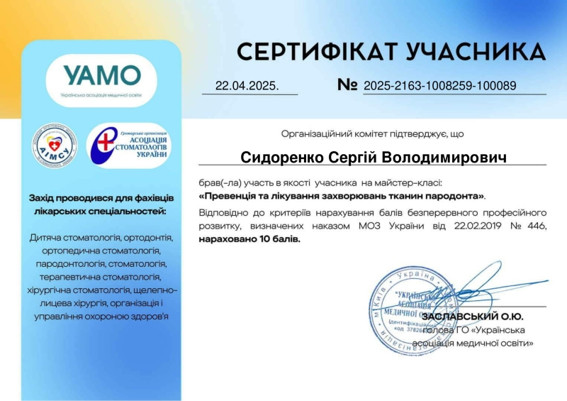 Врач-стоматолог-терапевт Сидоренко Сергей Владимирович