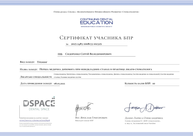 - Тренинг: «Первая медицинская помощь при неотложных состояниях в практике врача-стоматолога», 2025