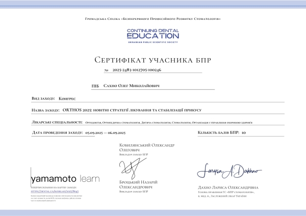 - Конгрес: «ORTHOS 2025: новітні стратегії лікування та стабілізації прикусу» , 2025