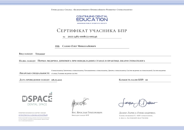 - Тренінг «Перша медична допомога при невідкладних станах в практиці лікаря-стоматолога», 2025